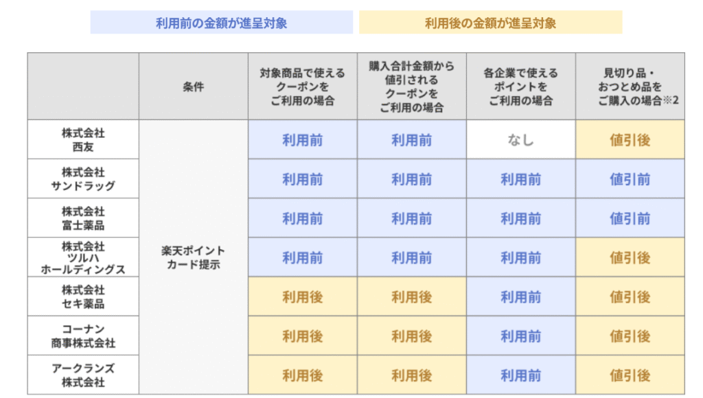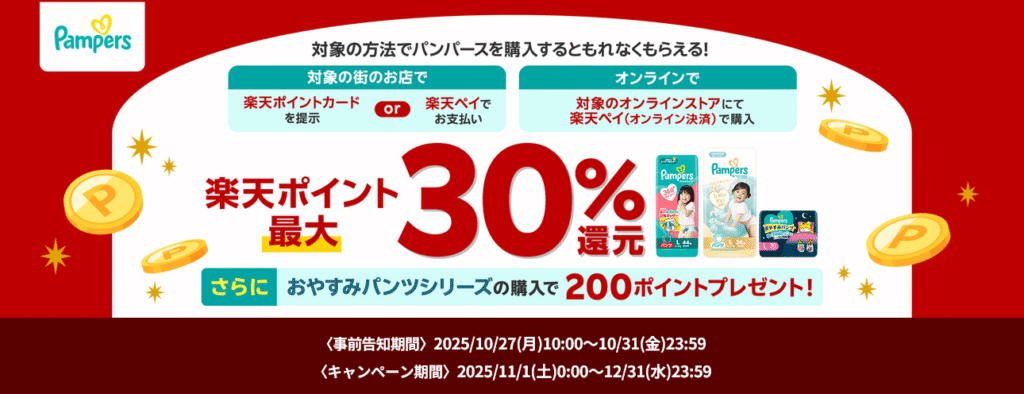 ツルハポイントは1P=1円分として使えますが値引き扱いとなってポイント利用分の還元が受けれなくなってしまうので、2025年11月~パンパース×楽天ポイントキャンペーンの時に1円分だけ残して残りはツルハポイントで払うなどの使い方が一番お得だと思います。ツルハはポイント利用前の金額が対象となります。